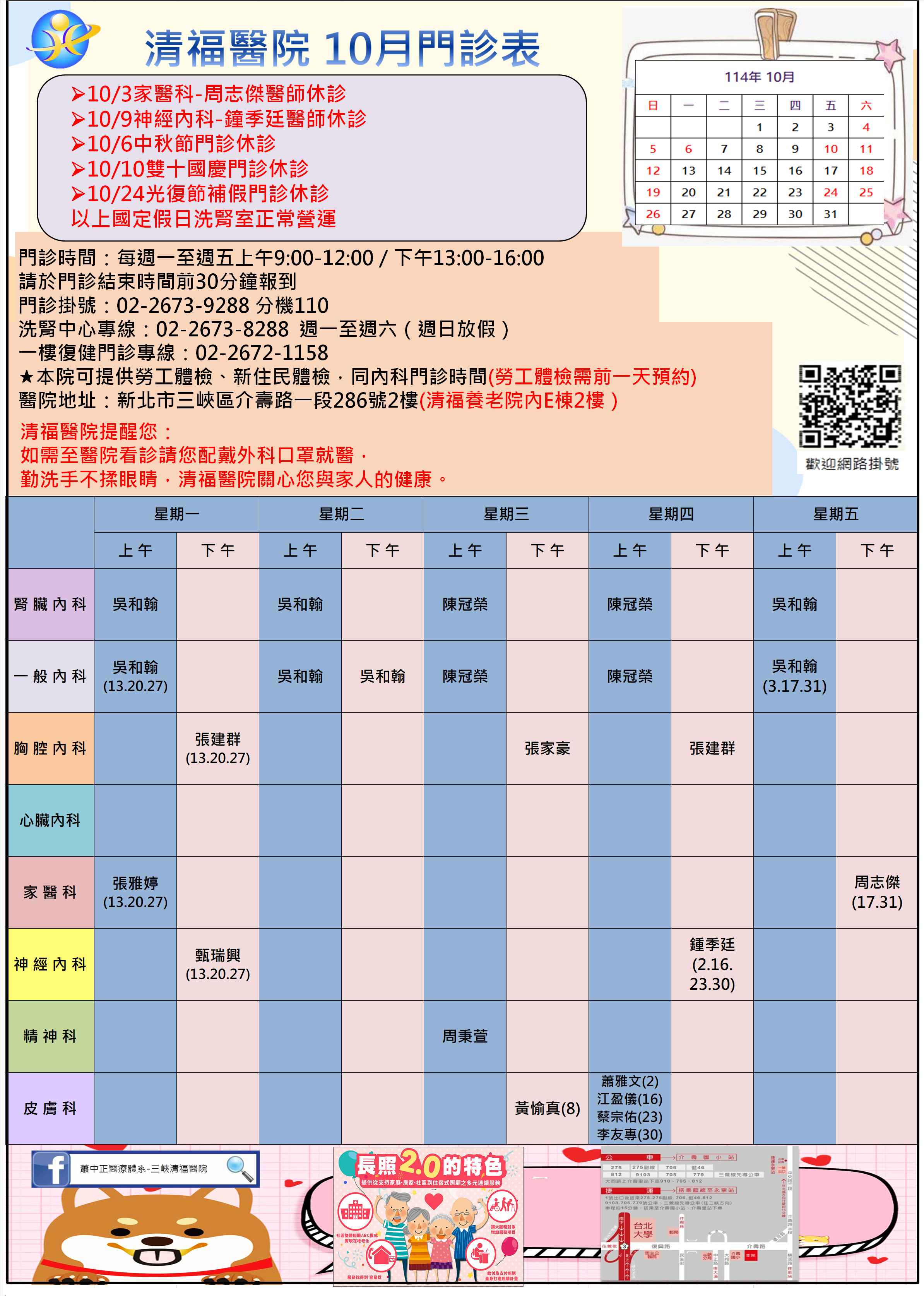 ☆神經內科、精神科、皮膚科由亞東醫院支援門診